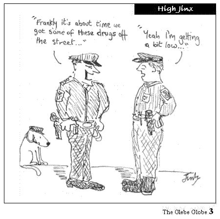 High Jinx is a cartoon, often observing current HPDP events, regularly published in the Glebe Globe.