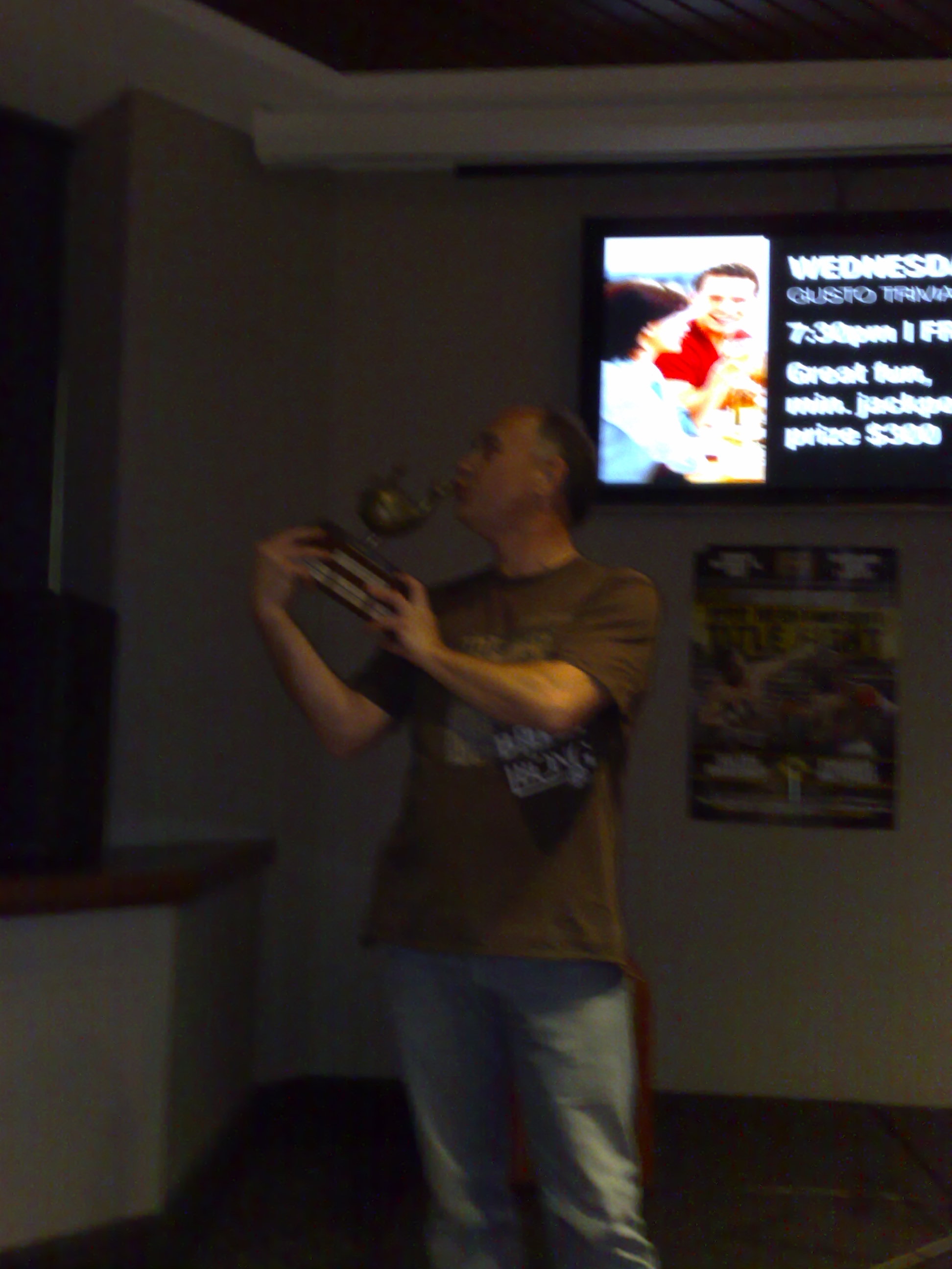 Well done Henare. His first ever comp win! Shame it was on a buyback eh Pete? And thanks to the finalists for putting the winnings on the bar. What a couple of gems you guys are. All the action at www.hpdp.org.au.