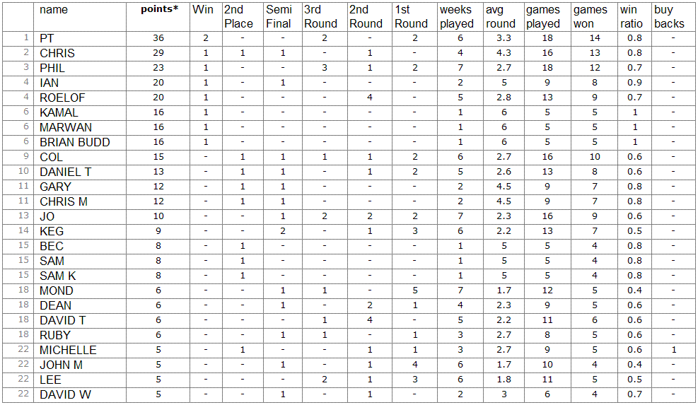 The following rules will be displayed and adopted for this week's pool comp.